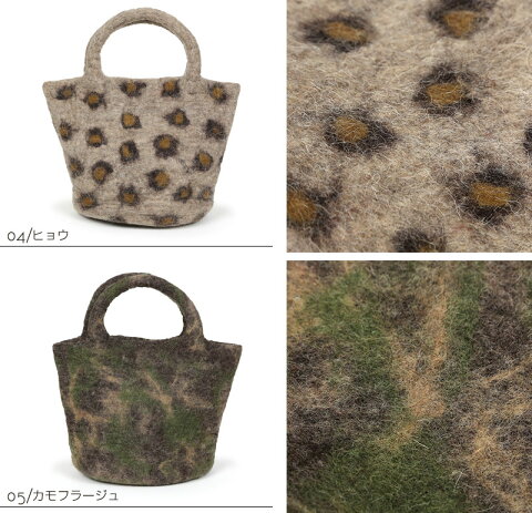 素 材 フェルト(ウール100%) サイズ 全体の高さ…約38cm本体の高さ…約25cm本体の横幅…約34cm本体の底幅…約29cmマチ幅…約7cm持ち手の高さ…約13cm※全て手作りのため、商品によって多少大きさが異なることがございます。